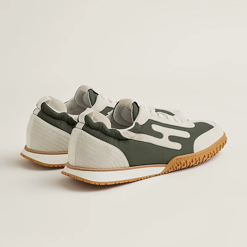 The Jet sneaker skillfully blends style and color. Its discreetly retro design is enhanced by the "H en biais" motif, giving it a unique allure. It's available in various shades and materials to suit all tastes.
