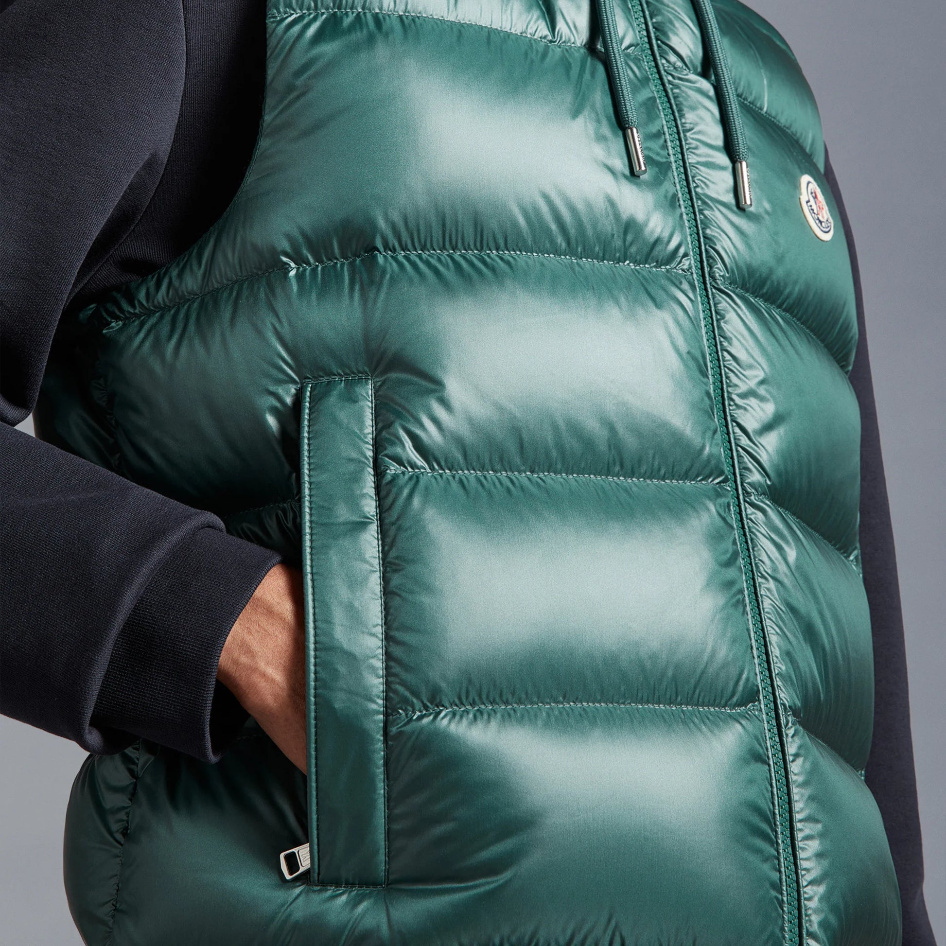 The Moncler Luiro Down Gilet in Emerald Green combines exceptional warmth with stylish design. Crafted with premium down insulation, it delivers lightweight, comfortable protection from the elements. Its streamlined silhouette and vivid color make it an essential piece for both fashion and functionality, ideal for any outdoor excursion.